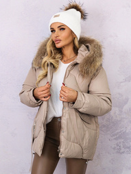 KURTKA ASYMETRYCZNA Z NASZYWKĄ NA RĘKAWIE I FUTERKIEM- BEŻOWA