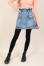 Jeansowa spódnica zapinana na guziki z łańcuszkami