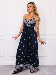 KOMPLET WZORZYSTY TOP+ SPÓDNICA Z ROZCIĘCIEM- NIEBIESKI