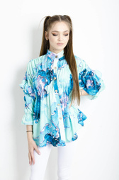 KOSZULA MARMURKOWA Z FALBANAMI NA RĘKAWACH - ZIELONA