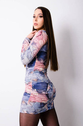 SUKIENKA MARMURKOWA MARSZCZONA Z PASKIEM - RÓŻOWO-NIEBIESKA