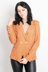 BRĄZOWA MARYNARKA W PEPITKĘ ZAPINANA NA ZŁOTE GUZIKI