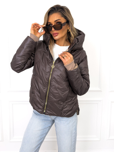 KURTKA PRZEJŚCIOWA PIKOWANA Z KAPTUREM I OZDOBNYM ZAMKIEM- BEŻOWA