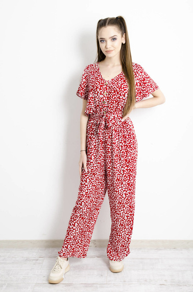 KOMBINEZON W KWIATY - CZERWONY