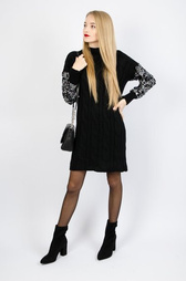 CZARNA SWETERKOWA SUKIENKA Z CEKINOWYMI RĘKAWAMI