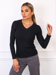 SWETER W PRĄŻKI Z DEKOLTEM W SEREK- CZARNY