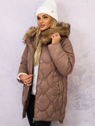 KURTKA PIKOWANA Z FUTERKIEM I OZDOBNYM BRELOKIEM- BRĄZ