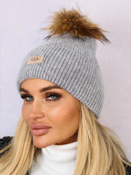 CZAPKA ZIMOWA Z OZDOBNĄ ZAWIESZKĄ SZARA