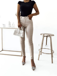 SPODNIE WOSKOWANE Z WYSOKIM STANEM- BEŻOWE