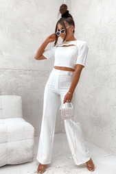 KOMPLET KRÓTKA BLUZKA Z WYCIĘCIEM+ SZEROKIE SPODNIE- BIAŁY