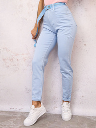 SPODNIE JEANSOWE MOM FIT Z PASKIEM- JASNO BEŻOWE