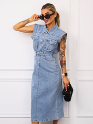 JEANSOWA SPÓDNICA Z UKRYTYMI SZORAMI PLISOWANA Z PODWÓJNYM PASEM
