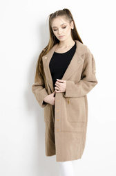 BRĄZOWY PŁASZCZ ALPAKA Z KIESZONKAMI