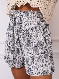 SZORTY PLISOWANE WZORZYSTE Z WIĄZANIEM W PASIE- SZARE