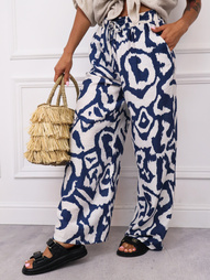SPODNIE W ZEBRĘ Z SZEROKIMI NOGAWKAMI- GRANATOWY