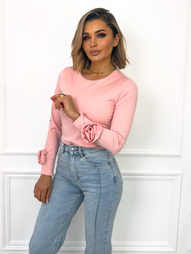 BLUZKA Z KWIATEM I OZDOBNYMI CYRKONIAMI- BEŻOWA