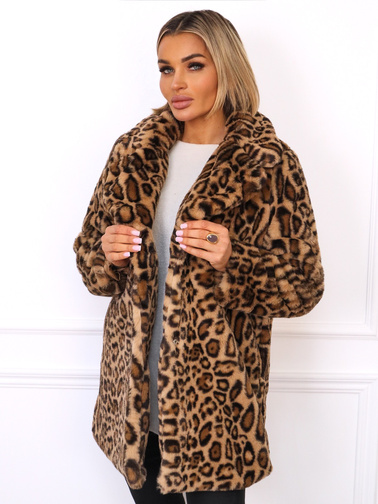 PŁASZCZ FUTRZANY Z KOŁNIERZEM- PANTERKA