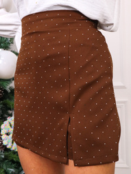 BRĄZOWA WELUROWA SPÓDNICA Z OZDOBNYM ŁAŃCUSZKIEM