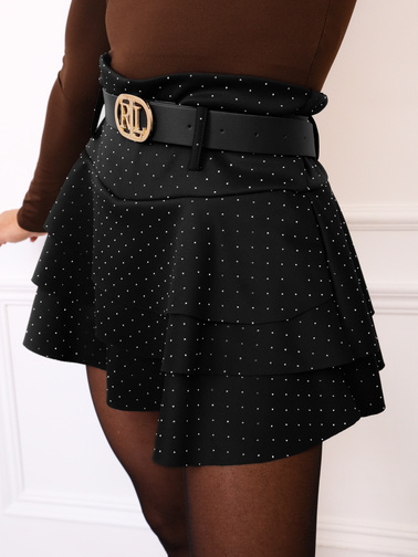 SUKIENKA MINI Z MARSZCZENIEM Z SIATKI W OZDOBNE RÓŻE - CZARNA