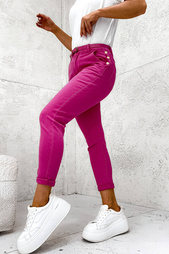SPODNIE JENASOWE MOM FIT Z GUZIKAMI NA KIESZENI + PASEK- RÓŻOWE