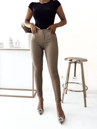 SPODNIE WOSKOWANE Z WYSOKIM STANEM- BRĄZOWE