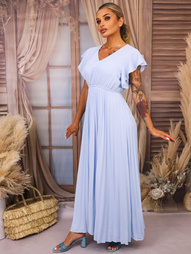 SPÓDNICA Z FALBANAMI WIĄZANA W PASIE- NIEBIESKA