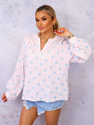 BLUZKA KOSZULOWA W PASKI I KWIATKI- RÓŻOWA
