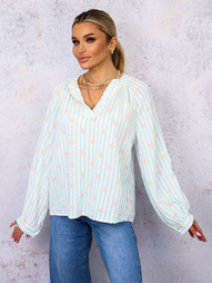 BLUZKA KOSZULOWA W PASKI I KWIATKI- NIEBIESKA
