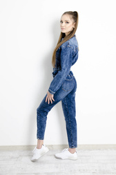 DŁUGI GRANATOWY KOMBINEZON JEANSOWY