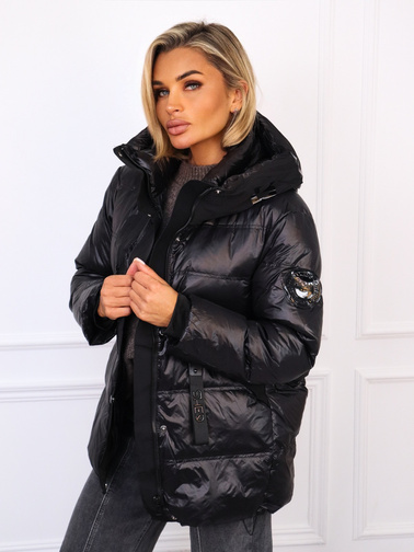 PIKOWANA POŁYSKUJĄCA KURTKA Z FUTERKIEM- CZARNA