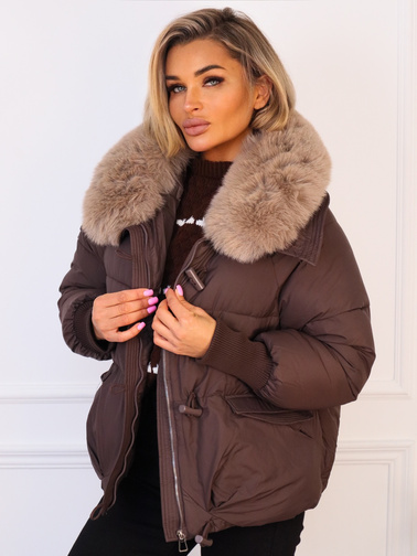 KURTKA KRÓTKA Z ODPINANYM FUTERKIEM- CZEKOLADOWA