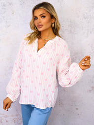 BLUZKA KOSZULOWA W PASKI I KWIATKI- JASNORÓŻOWA