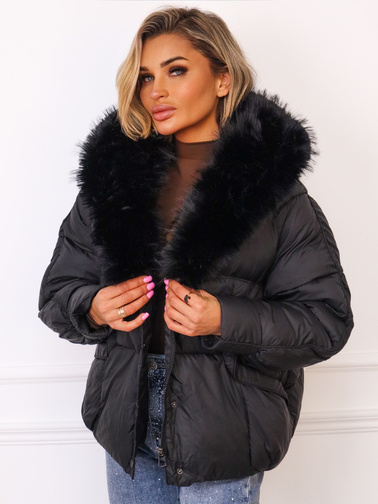 KURTKA Z FUTERKIEM NA KOŁNIERZU- CZARNA