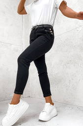 WOSKOWANE SPODNIE Z KIESZENIAMI NA BOKACH- CZARNE
