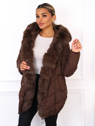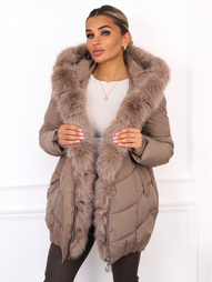 DŁUGA PIKOWANA KURTKA Z FUTERKIEM- BRĄZOWA