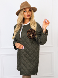 DŁUGA PIKOWANA NARZUTA Z KWIATEM Z OZDOBNĄ PANTERKĄ WEWNĄTRZ- ZIELONA