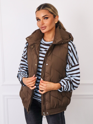 PIKOWANA KAMIZELKA Z KAPTUREM I ZATRZASKAMI PO BOKACH- BRĄZOWA