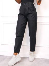 CZARNE SPODNIE WOSKOWANE Z KIESZONKAMI ZAMKI - WYSOKI STAN