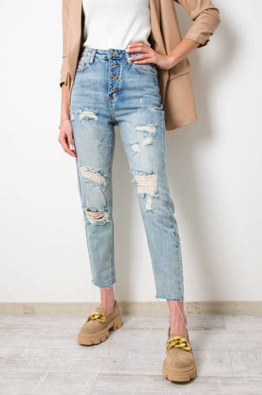 Masz ochotę na odrobinę szaleństwa? Co powiesz na damskie spodnie mom fit jeans z ekstrawaganckimi zdobieniami, takimi jak dziury lub przetarcia? Znajdziesz tu zarówno miejskie klasyki, jak i wariacje na temat mody z lat 90. Dopasujesz do nich, co tylko zechcesz: skórzaną ramoneskę, kolorowy T-shirt, elegancką narzutkę lub top na ramiączkach. Bez względu na to, z czym zestawisz damskie jeansy mom fit wiedz, że będziesz wyglądać w nich znakomicie!