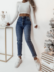 SPODNIE JEANSOWE MOM FIT Z PRZESZYCIAMI PRZY KIESZENIACH I NASZYWKĄ PUSH UP+ PASEK