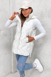 KAMIZELKA PIKOWANA Z KAPTUREM - BEŻOWA