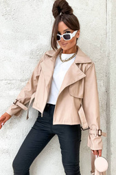 KURTKA RAMONESKA Z IMITACJI SKÓRY Z FUTERKIEM- BEŻOWA