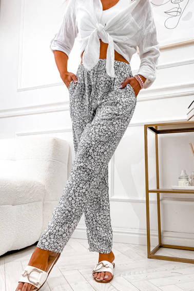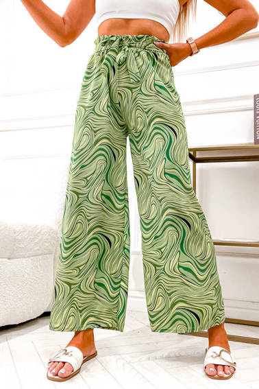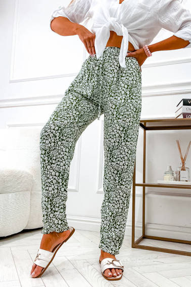 SPODNIE MATERIAŁOWE W KWIATY Z GUMĄ W PASIE- ZIELONE