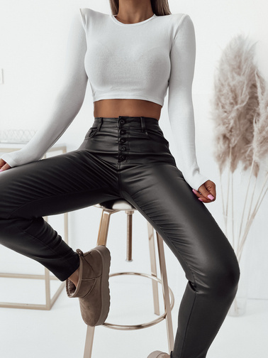Polecamy zarówno czarne, jak i zielone oraz bordowe skórzane spodnie o różnych fasonach i dodatkach. Modele ze złotymi i srebrnymi zamkami przyciągają wzrok do bioder, optycznie wydłużają także nogi. Natomiast warianty z wysokim stanem i zamkiem z boku aż proszą o wsunięcie brzegu koszuli za pasek, co podkreśli talię.