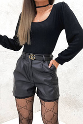 SZORTY Z WYSOKIM STANEM I BRĄZOWYM PASKIEM- CZARNE