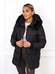 KURTKA Z IMITACJI SKÓRY Z OCIEPLENIEM I OZDOBNYM FUTERKIEM- CZARNA