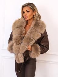 KURTKA RAMONESKA Z EKOSKÓRY Z ODPINANYM FUTERKIEM- BRĄZOWA