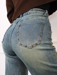 SPODNIE JEANSOWE Z OZDOBNYMI PASKAMI W PASIE- JASNY JEANS