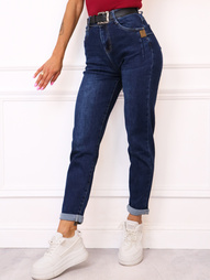 SPODNIE JEANSOWE MOM FIT Z PRZESZYCIAMI PRZY KIESZENIACH I NASZYWKĄ PUSH UP+ PASEK