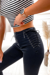 WOSKOWANE SPODNIE Z KIESZENIAMI NA BOKACH- CZARNE